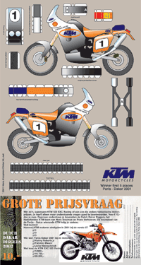 Een teameigenaar bedacht een loterij waarvan de baten ten goede zouden komen van zijn Parijs-Dakar team. Hoofdprijs een KTM 520 enduro t.w.v. ruim 20 mille. Om de verkoop van de loten extra te stimuleren bedachten wij er een bouwplaat bij. Dus altijd prijs.
